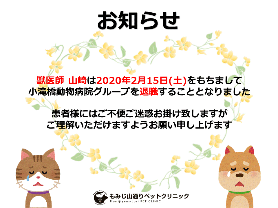 いつも小滝橋動物病院グループをご利用いただき、誠にありがとうございます。